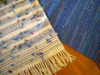 Whitehall resident, Marilyn Ryan, has been weaving for about 15 years. She has made a wide variety of items, from tiny sachets to rugs and towels, but her favorite thing to weave is clothing. Sometimes this is as straight-forward as a soft winter scarf and sometimes it’s as complicated as a finely tailored jacket. She works in cotton, linen, wool, silk, and a variety of synthetics. She has even woven lavender and grass and, in one stretch of the imagination, Caution Tape.